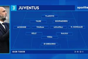 体育资讯4月12日讯 北京时间明天凌晨,尤文将在意甲第32轮比赛中主场对阵莱切。Sportitalia预测了尤文此役的首发阵容。